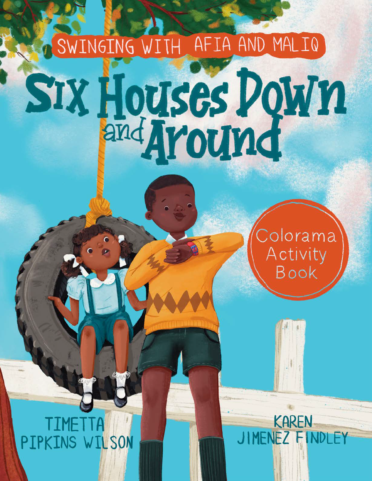 The Author and Illustrator team up once again to create for you, your very own art experience using our new Colorama Activity Book, which goes along with your SIX HOUSES DOWN AND AROUND story book. Now you can create your own characters using our designs.